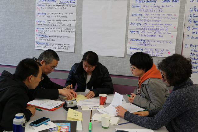 培训团一行先后赴西蒙弗雷泽大学(Simon Fraser University)、温哥华岛大学(Vancouver Island University)、维多利亚大学 (University of Victoria)和多伦多大学(University of Toronto)进行培训学习。其中在温哥华岛大学围绕当代课堂教学方法进行了专业教师主题培训,VIU的资深教授Ken先生和Nancy女士等带领大家系统地学习了当代课堂教学方法。当代课堂的教学方法是一种包含了预评估、目标、互动教学、课后反思、总结等的小组学习法。学习者分为小组进行了讨论、探究、实践等学习。
